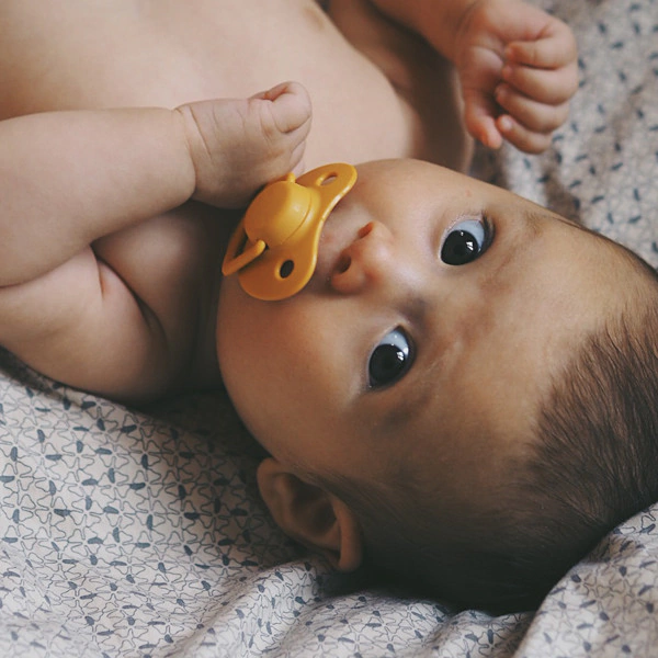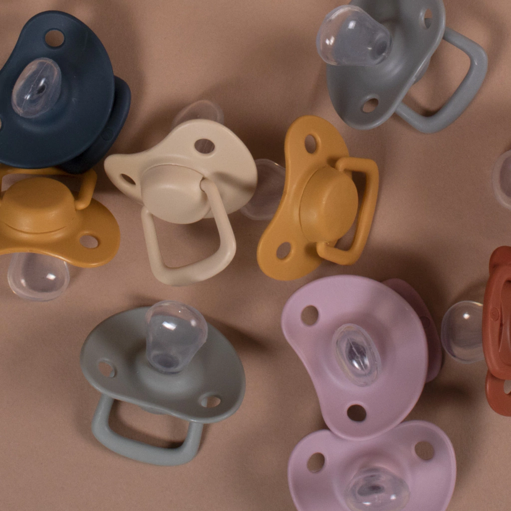 Estos chupetes son amados por los bebés de todo el mundo. Vienen en una gama de elegantes colores y tienen una tetina de silicona simétrica con la forma perfecta para cada grupo de edad. Como la tetina está hecha de silicona, no se deformará ni expandirá con el uso. Los chupetes no solo se ven geniales, sino que también vienen con una caja de plástico que se puede usar para guardarlos y también para esterilizarlos. Sí, lo leíste correctamente. ¡Puedes esterilizarlos en su contenedor de almacenamiento!